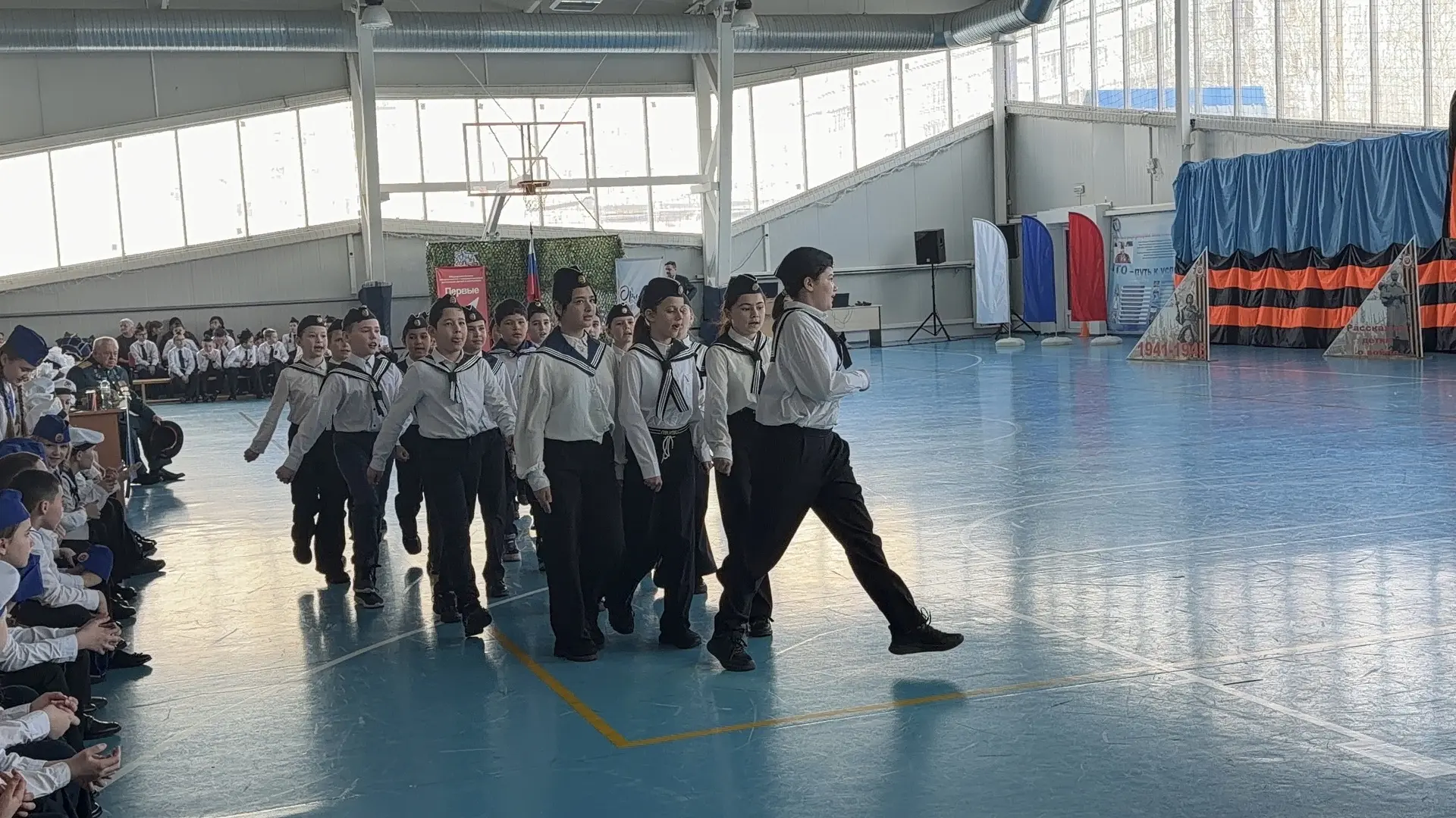 Наши ребята, облаченные в морскую форму, представили отряд под гордым названием «Юнга». С юношеским задором и настоящей морской выдержкой они прошли строевым шагом, исполнили песню, показав отличную подготовку и командный дух.