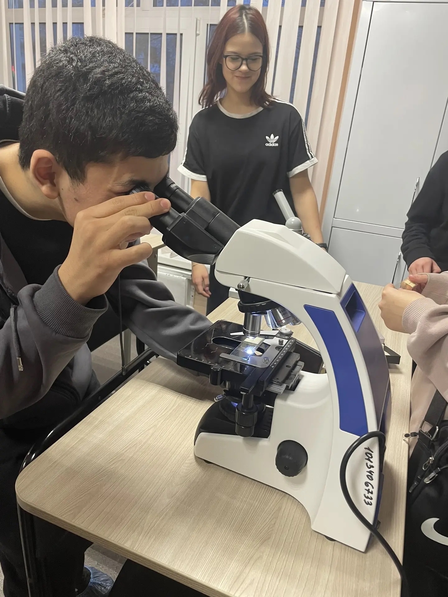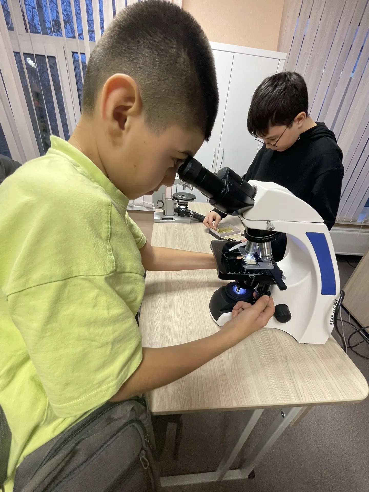 Но самым интересным в экскурсии оказался мастер-класс «Мир под микроскопом»! Ребятам дали власть над настоящим цифровым микроскопом, предварительно рассказав о его назначении, устройстве и работе. А после они сами попробовали настроить оборудование, приготовить препараты и рассмотреть невидимый глазу мир.